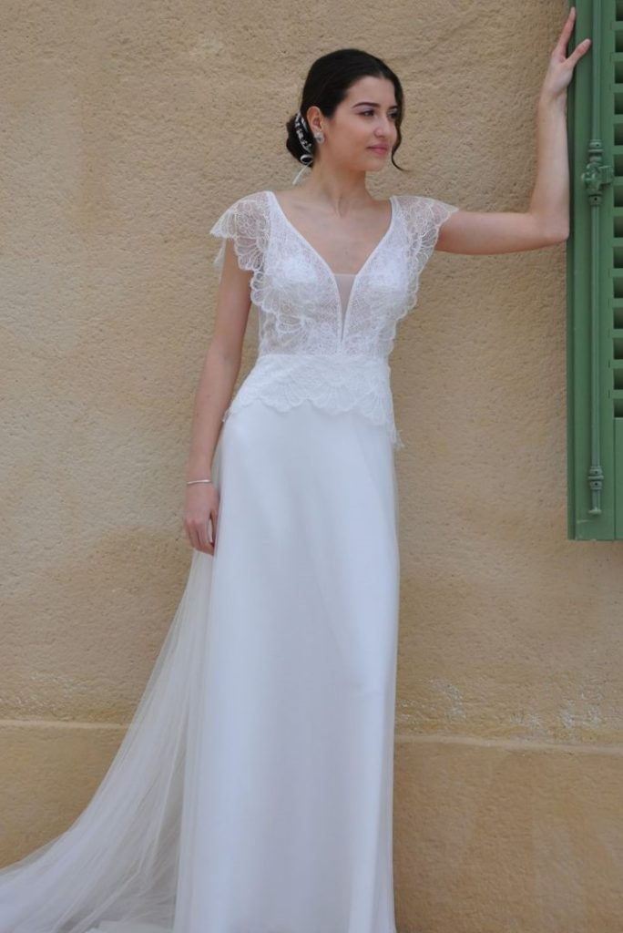 Modèle disponible à l’essayage dans nos 3 boutiques de robes de mariée à SALON de Provence, SAINT MITRE les remparts/MARTIGUES et ORANGE Vaucluse.