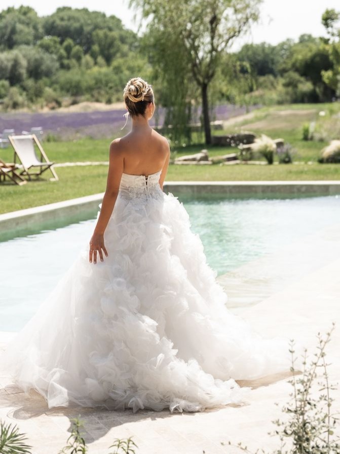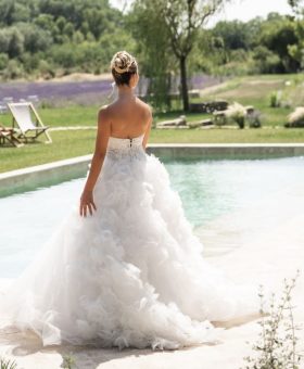Modèle disponible à l’essayage dans nos boutiques de robes de mariée de Salon de Provence et de St mitre les remparts/Martigues.