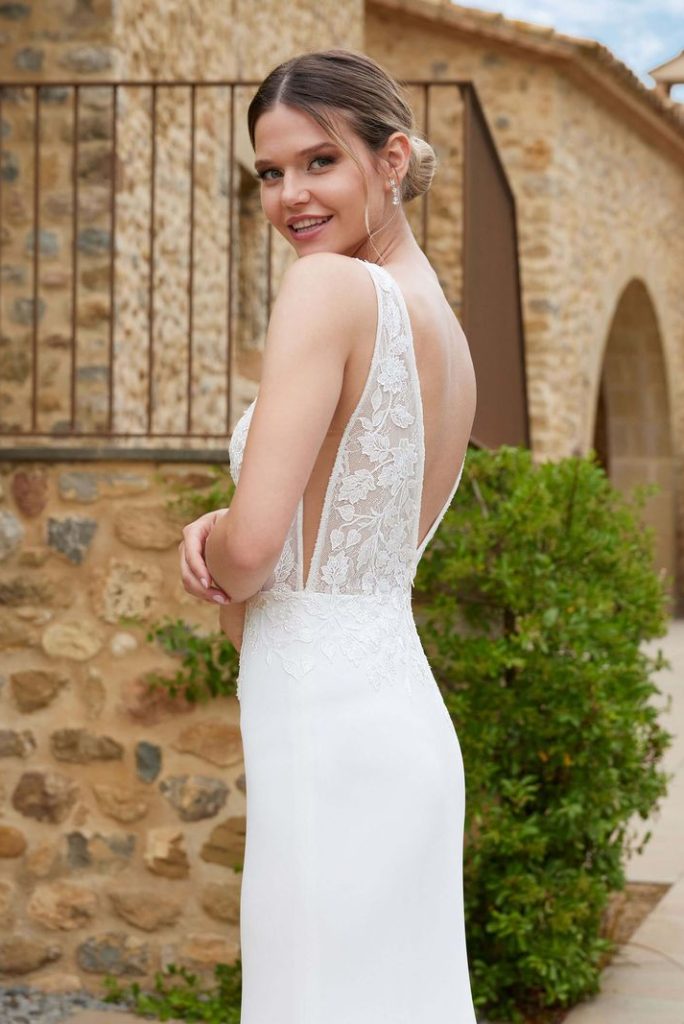 Robe de mariée sirène tout en dentelle avec grand décolleté dans le dos. pour une mariée moderne et sexy.